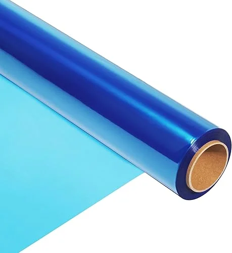 Tickjoy 200 ft Blue Cellophane Wrap Roll (16 in x 200 ft x 2.5 Mil) – Colored Cellophane Wrap-Blue Transparent Cellophane Wrap for Gift Baskets, Attached with 2 Rolls Ribbon