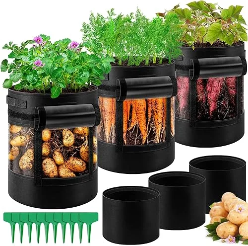 3 Pack 10 Gallon 360° Visibility Potato Grow Bags with Shading Flap, Plant Grow Bags for Growing Potatoes Heavy Duty Thickened Nonwoven Fabric Gardening Vegetable Growing Bags with Harvest Window