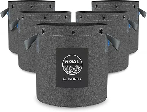 AC Infinity Heavy Duty Fabric Pots, 5 Gallon Aeration Reusable Grow Bags 5-Pack with 500G Thick Nonwoven Fabric and Multi-Purpose Rings, for Low Stress Plant Training Fruits, Vegetables, and Flowers