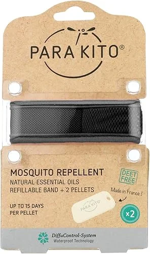 PARA'KITO Mosquito Insect & Bug Repellent Wristband – Waterproof, Outdoor Pest Repeller Bracelet w/Natural Essential Oils – Sport Edition (Black)