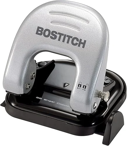 Bostitch Office EZ Squeeze Reduced Effort 2-Hole Punch, 20 Sheets, Locking Handle, Silver (2310)