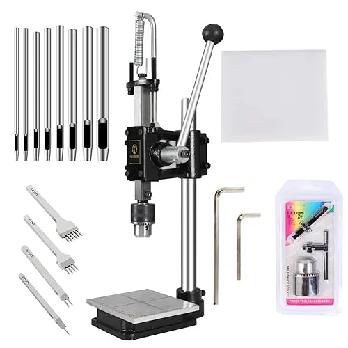Leather Hole Puncher Hand Punching Machine Manual Press Puncher Punch Tools for DIY Craft (with Chuck, PP Plate and Aluminum Plate) (Style D)