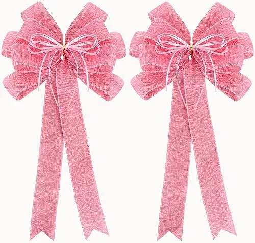 2 Pack Pink Christmas Tree Bows 12x20inch Large Burlap Wreath Bow with Glitter String for Christmas Tree Topper,Home Front Door Decor,Easter Bow, Valentines and Party Decor