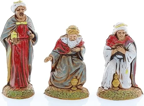 Trio of Wise Men for Nativity Scene of 2.50 Inch Scale 1:32 – Unbreakable Nativity Figures – 18th Century Style, Hand-Finished Painting, Official Product, Made in Italy, Sculptor M. Landi