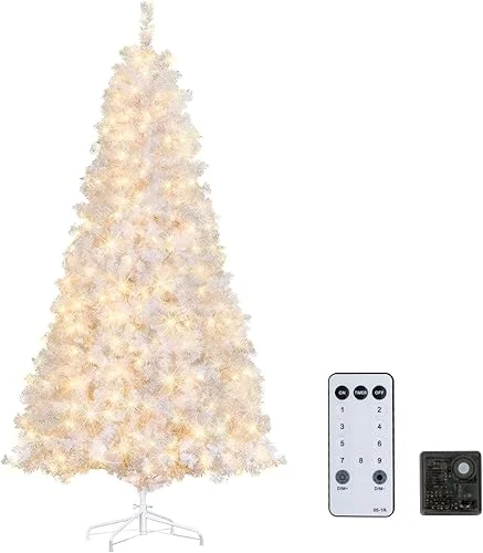 6ft White Pencil Christmas Tree with Remote Control, Prelit Slim Artificial Christmas Tree with 200 Warm White & Multi-Color Lights, Time Functional Xmas Tree with 618 Tips, for Party Office