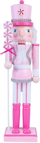 Christmas Pink Nutcracker Decor – 14′ Wooden Nutcracker Soldier Figures Christmas Doll Ornament for Girl Festival Party Xmas Gift Desktop Home Decorations