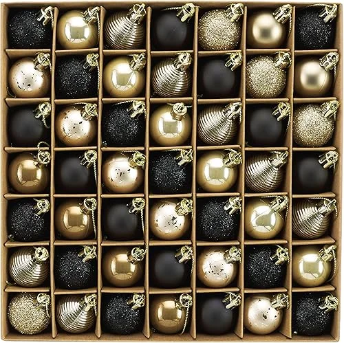 Decorbyhannah Christmas Ornaments,49ct 1.18inches Mini Black Gold Christmas Tree Ornaments Halloween Decorations, Shatterproof Small Hanging Ball Ornaments for Christmas Tree for Seasons,Table Decor