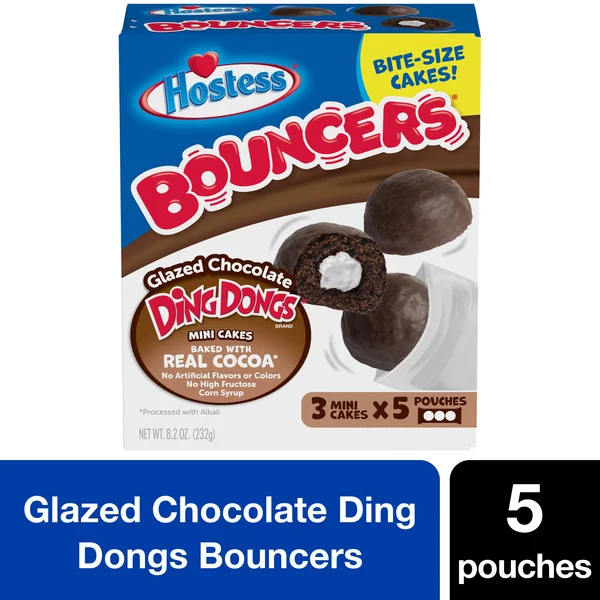 Hostess BOUNCERS Glazed Chocolate DING DONGS Packable Pouches Perfect for Lunchboxes