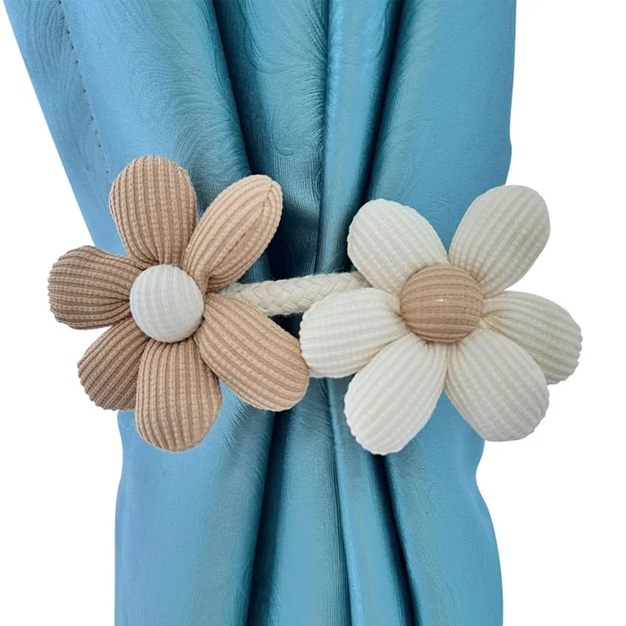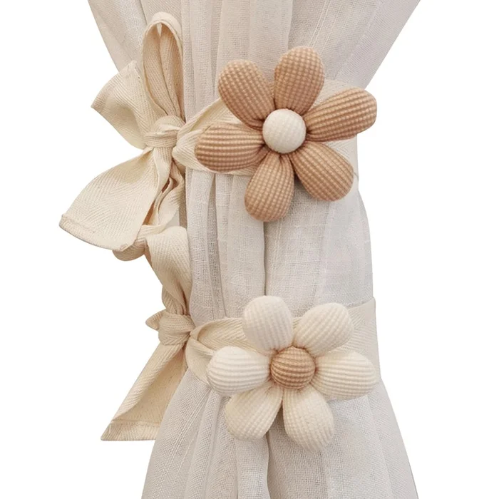 New Cartoon Curtains With 4 Folded Straps Six Khaki/Beige Flowers+Five Khaki/Beige Flowers F