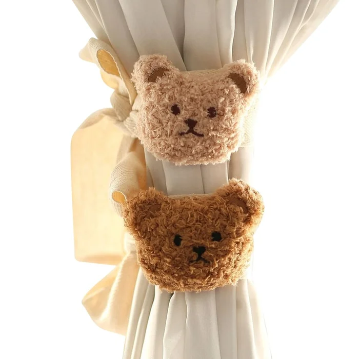 New Cartoon Curtains With 4 Folded Straps White Bear+Coffee Bear+Milk Tea Bear+Black Bear F