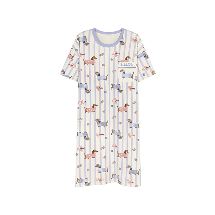 New Cartoon Cute Wind Belt Chest Mat Short Sleeve Sleeping Skirt Home Clothes Beige Print M