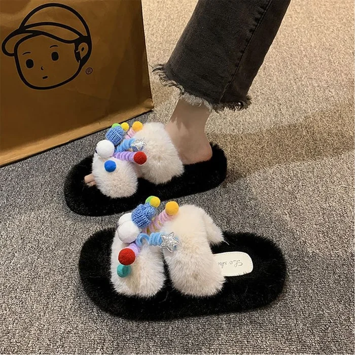 New Cartoon Fur Home Anti Slip Cotton Slippers In Off White 35(35-36)