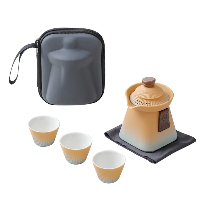 New China-Chic Palace Style Travel Portable Tea Set Yellow+Red (One Pot And Three Cups) F