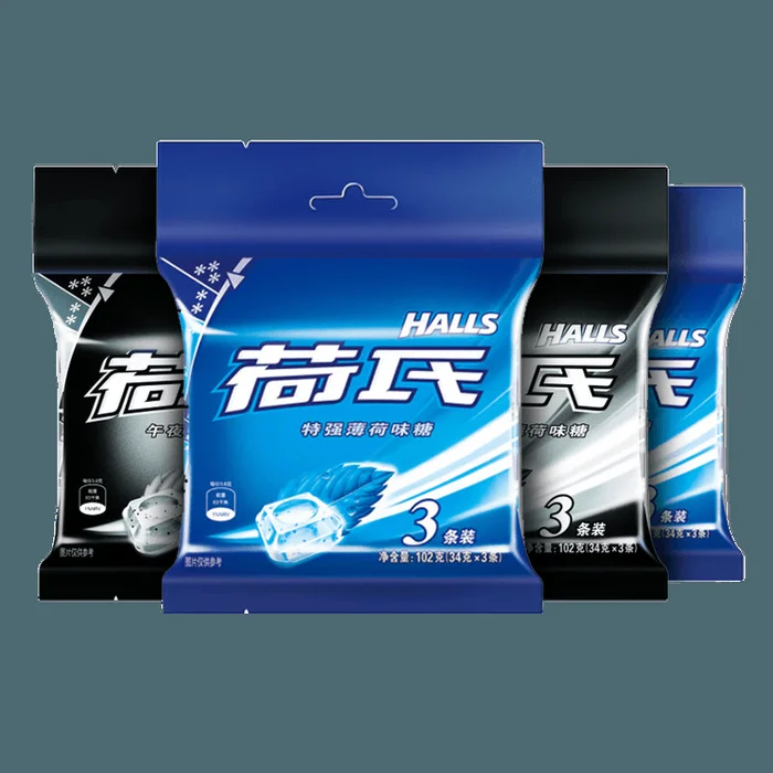 Halls Menthol Candy – Extra Strong Midnight Storm Flavor 3-Stick Pack (102g) x 4 Packs