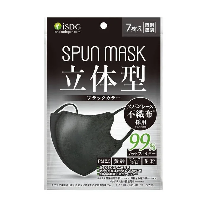 SPUN MASK Non-woven Three-dimensional Individually packaged masks #Black 7pcs