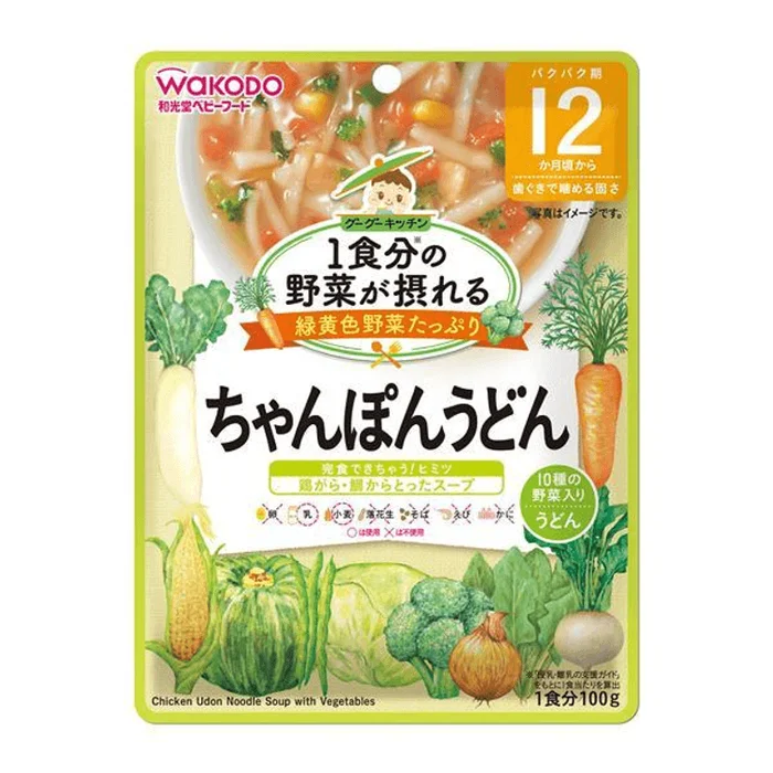 Wakodo 1 Meal Vegetable Ingredients Gugu Kitchen Champon Udon [12 months and older, 100g]
