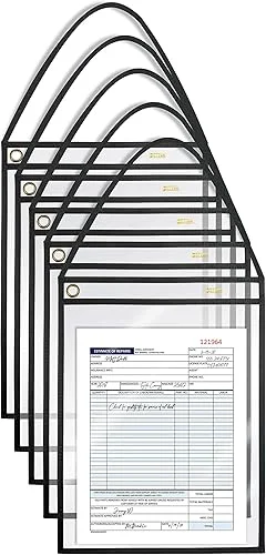 10 Pack, Black, Job Ticket Holders, 10′ Wide x 13.5′ Tall – Clear Plastic Shop Ticket Holders – Easy to Use, Reusable & Easy Erase Plastic Invoice Holders, Water-Resistant & Durable