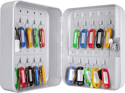Barska Key Lock Key Cabinet Lock Box with Numbered Hooks and Tags – 20 Position – Color Tags