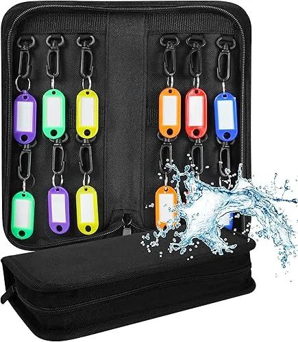Portable Zippered Key Organizer, Waterproof Key Case with 12 Key Hooks and Tags,Portable Key Storage for Rental Management Real Estate Sales Hotel Executives and Car Service