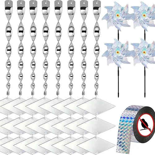 Bird Devices Outdoor Set, Bird Reflectors to Keep Birds, Bird Reflectors Shiny Wind Spinners, Reflective Pinwheels with Stakes, Keep Geese, Pigeon, Duck, Woodpecker Away