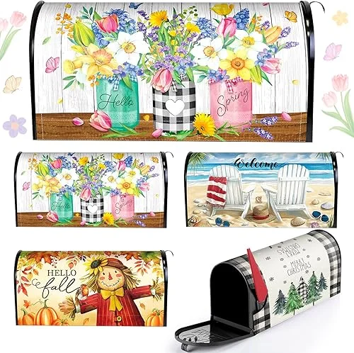 Blosssound 4 Pcs Mailbox Covers Magnetic Standard Size 18 x 21 Inch Hello Spring Summer Autumn Winter Seasonal Mailbox Covers Wraps for Holiday Garden Yard Outdoor Decor