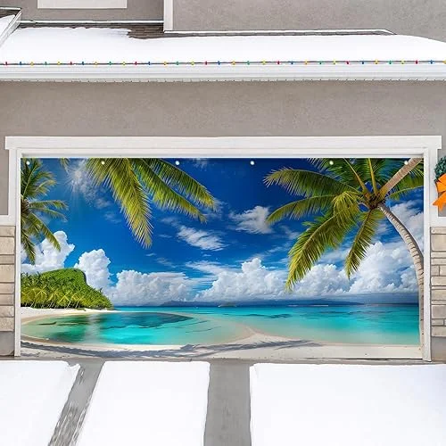 Halloween Garage Door Banner Cover with Grommets Scary Garage Door Decoration Set Holiday Background Sign for Halloween Indoor Outdoor Wall Door House Decor,6 x 13 ft(Beach)
