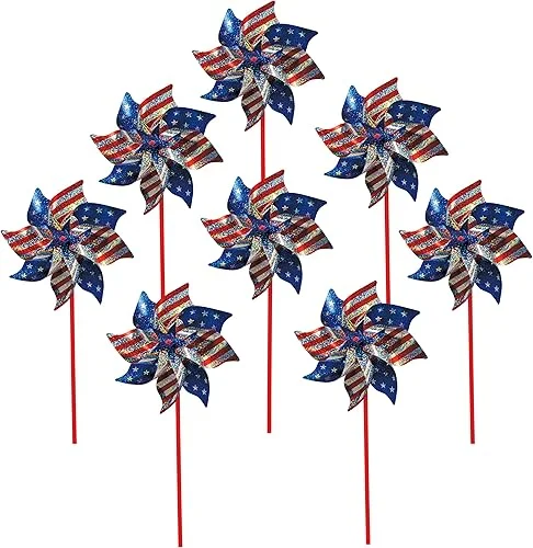 n The Breeze 2805 Mylar Rainbow Pinwheel – Assorted 2 Tone Color Spinners – 8 Piece Bags, 8 Inch