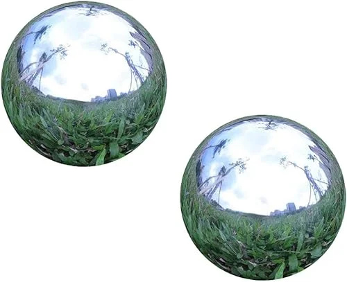 Pack of 2, Stainless Steel Hollow Gazing Ball Mirror Polished Shiny Sphere for Home Garden Ornament (4 Inch)