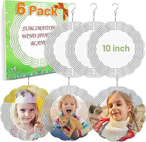 Remiawy Sublimation Wind Spinner Blanks, 6 Pack 10 Inch 3D Aluminum Metal Hanging Wind Spinners Sublimation Blanks Kinetic Sculpture DIY Crafts for Yard Garden Indoor Outdoor Porch Decoration Round