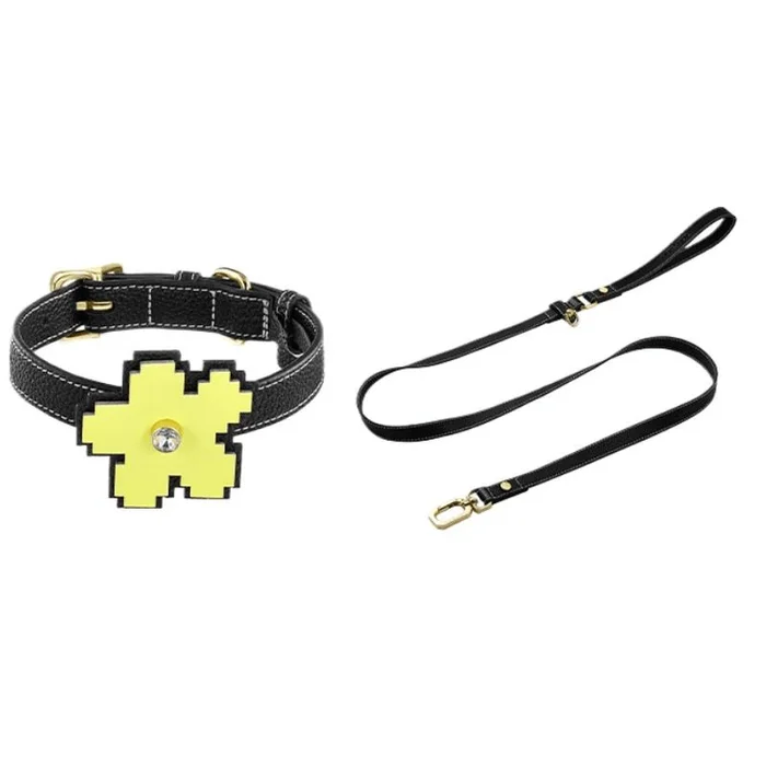 Mars Phone Pet Collar Pixel Flower+Black Market Shining Collar (31-38cm)