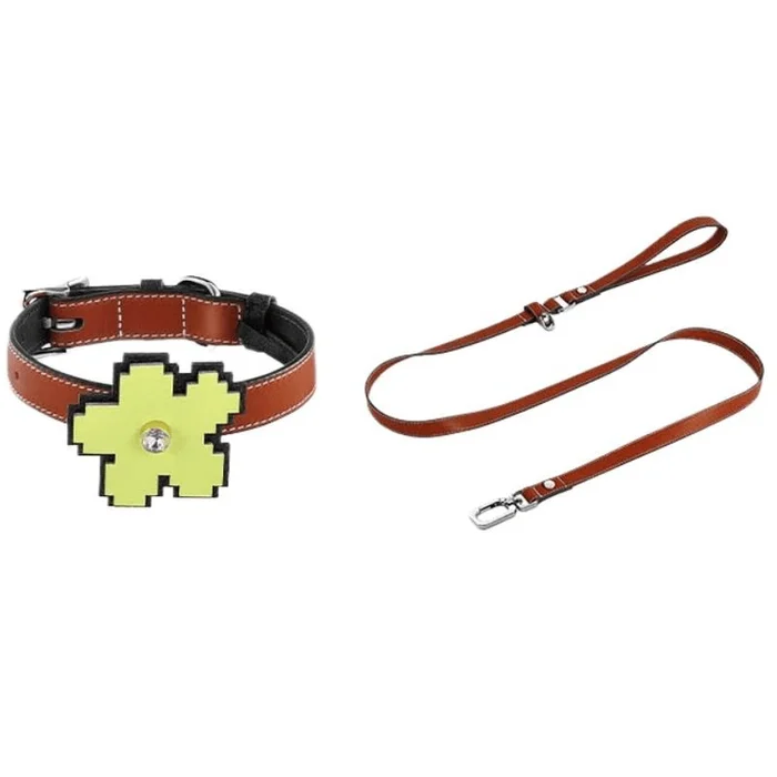 Mars Phone Pet Collar Pixel Flower+Cocoa Brown Collar (31-38cm)