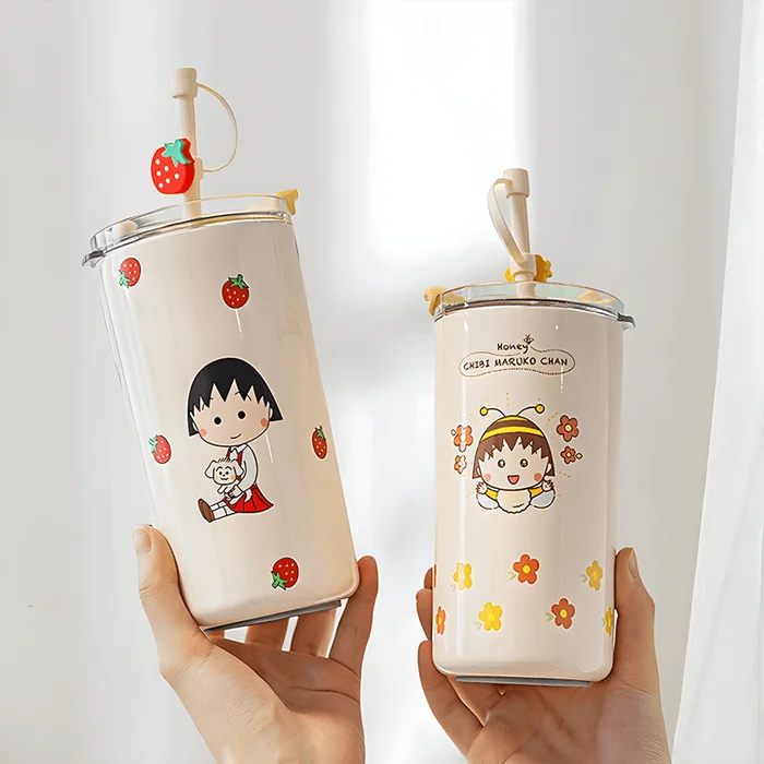 Chibi Maruko-chan Strawberry Straw Thermos Water Bottle16.23 fl oz
