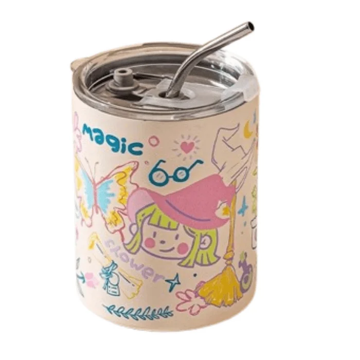 Coffee Mug Outside Stainless Steel Insulated Mug Drinking Mug Straw Mug 350ml-Magic Girl 1pc