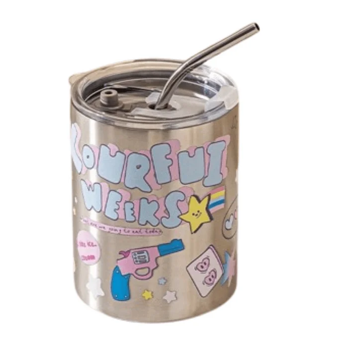 Coffee Mug with Stainless Steel Insulated Mug Drinking Mug Straw Mug 350ml – Colourful Weekly Pack of 1