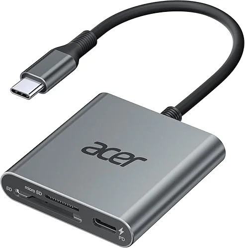 Acer SD 4.0 Card Reader, UHS-II Micro SD Reader USB C, Dual Slot Type C Memory Card Adapter with 100W PD Port for MicroSD SDXC SDHC UHS-II & UHS-I for iPhone 15/16, Laptop, MacBook(Grey)