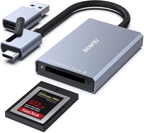 BENFEI CFexpress Type B Card Reader with USB 3.2 (Gen 2) 10Gbps, USB-C&USB-A 2-in-1 Type B CFexpress Adapter, Compatible with Windows/Mac/Linux/Android(Not for XQD Card)