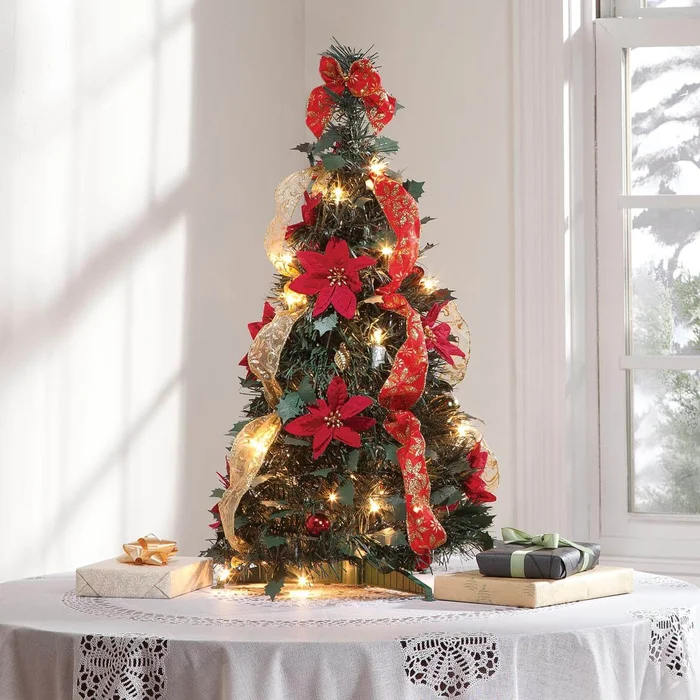 2′ Pull Up Fully Decorated Prelit Poinsettia Tree Holiday Pe