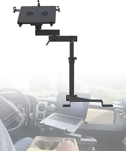 Car Laptop Mount for Vehicle, Trucks, Vans, Adjustable Aluminum No-Drill Laptop Car Holder