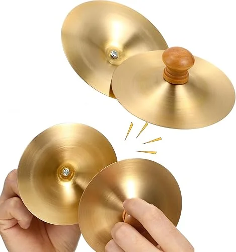 Vaguelly Finger Cymbals with Wooden Handles, 1 Pair Copper Band Cymbals, 9cm/3.5in Mini Marching Cymbals, Hand Cymbal Belly Dance, Orff Music Instrument for Child & Adult