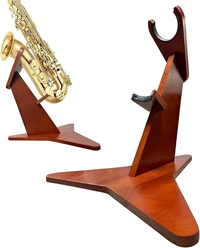 Wooden Saxophone Stand Display Holder For Alto/Tenor Sax, Adjustable height Handmade Solid Wood Floor Stand Holder, Colour Beech