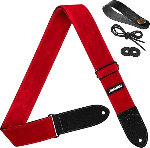 Amumu Flocked Velvet Guitar Strap – Guitar Accessories – Fits Acoustic, Bass, Electric Guitar, Red