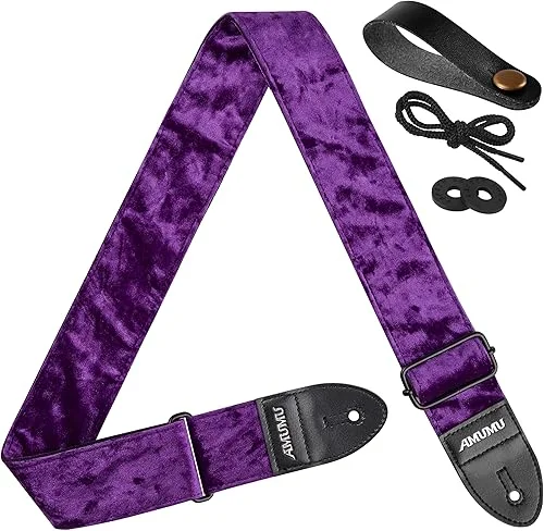 AMUMU Flocked Velvet Guitar Strap with Microfiber Leather Ends – Guitar Accessories – Fits Acoustic, Bass, Electric Guitar, Purple