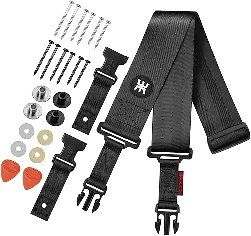 Amumu SNAPLOCK Pro Guitar Strap – Quick-Release Buckle, Screw Fasten Ends, Quick-Fetch Pick Holder, Adjustable 38′-57′, Fits Bass, Electric Guitars, Gift for Guitarists, Black