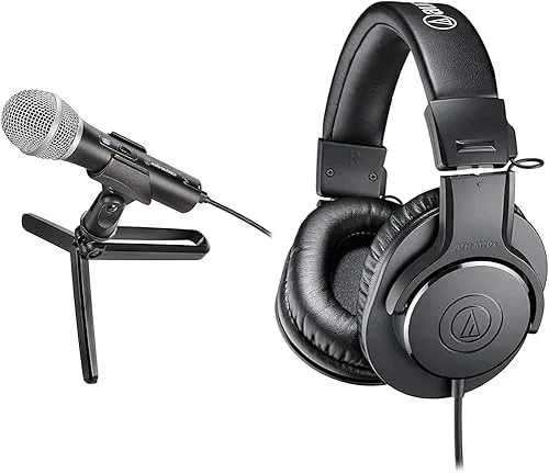 Audio-Technica ATR2100x-USB Cardioid Dynamic Microphone (ATR Series) USB and XLR Outputs & ATH-M20X Professional Studio Monitor Headphones, Black