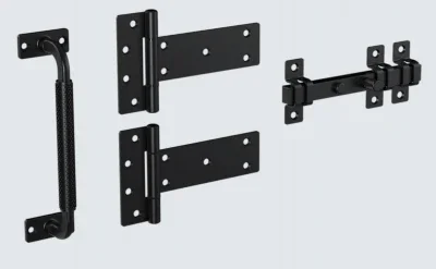 Industrial Gate Kit, Pull, Latch & 2 Hinges, Weatherguard Coated, Black