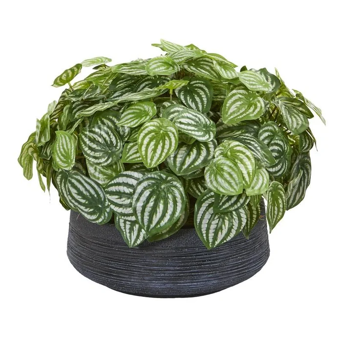 14″ Watermelon Peperomia Artificial Plant in Decorative Bowl (Real Touch)