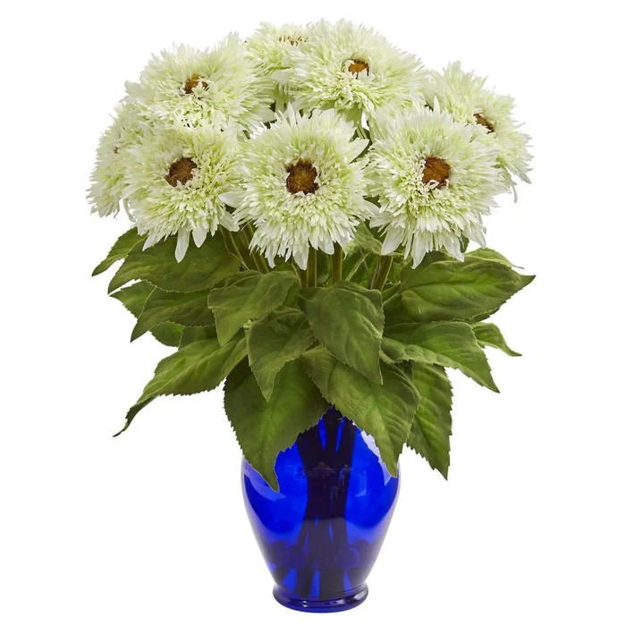 Sunflower Artificial Arrangement in Blue Vase
