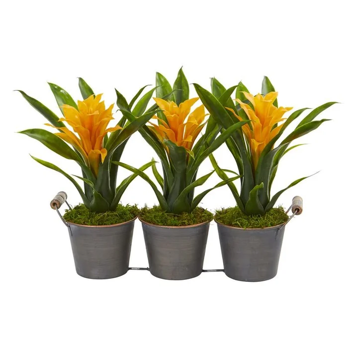 Triple Potted Bromeliad Artificial Plant in Decorative Planter