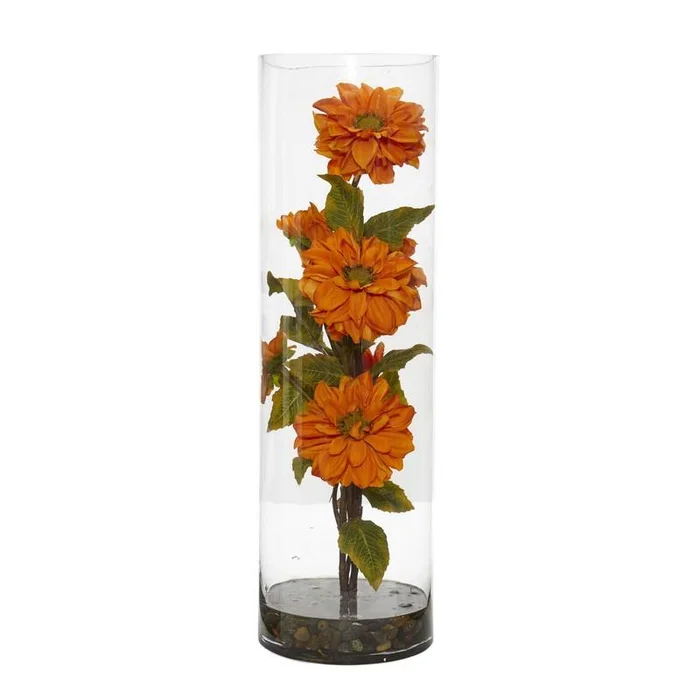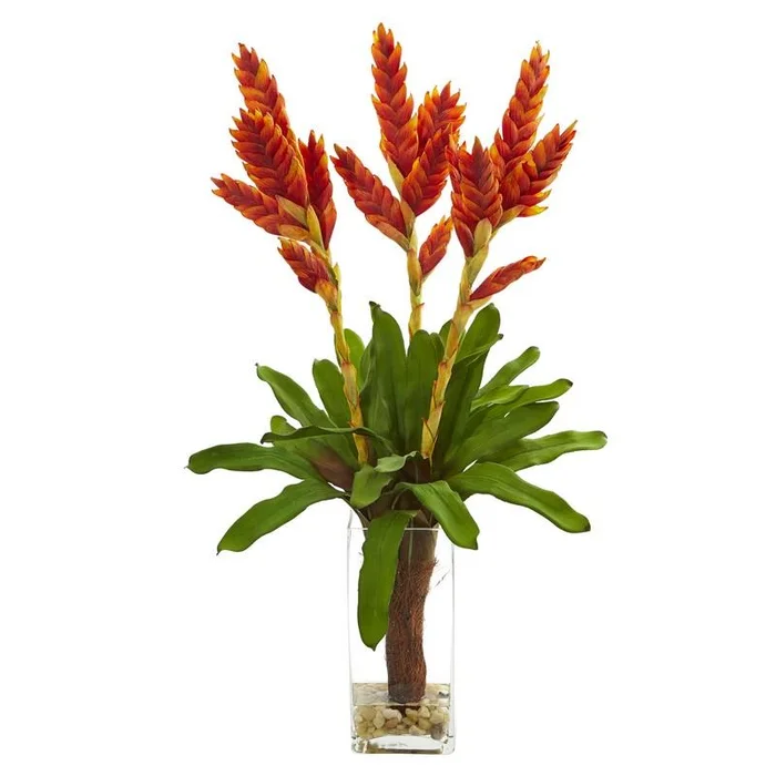 Tropical Bromeliad Artificial Arrangement in Glass Vase