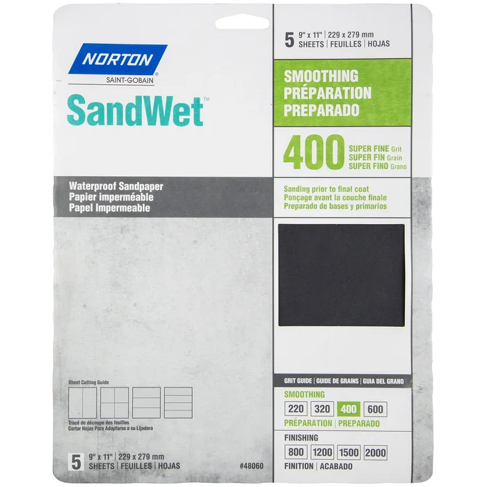 48060 Sanding Sheet, 9 In L, 11 In W, 400 Grit, Super Fine, Aluminum Oxide Abrasive